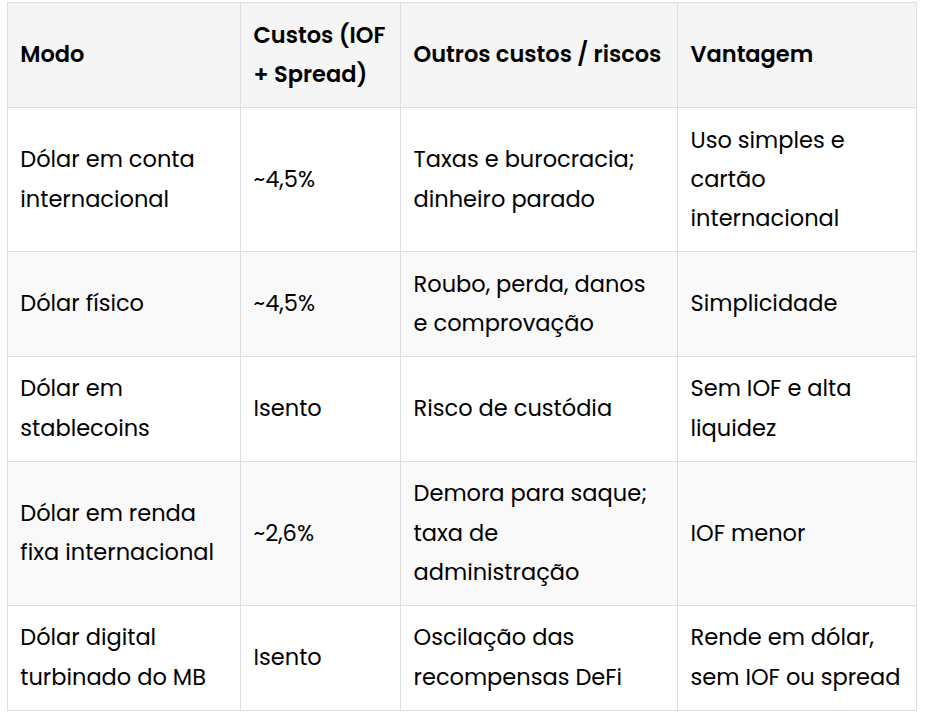Comparativo das formas de dolarização para brasileiros