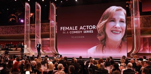 Catherine O’Hara interpretou Patty Leigh em “O Estúdio”. Ela concorreu na categoria de Melhor Atriz em Série de Comédia com a colega de série Kathryn Hahn, Jenna Ortega (“Wandinha), Jean Smart (“Hacks”) e Kristen Wiig (“Palm Royale”).