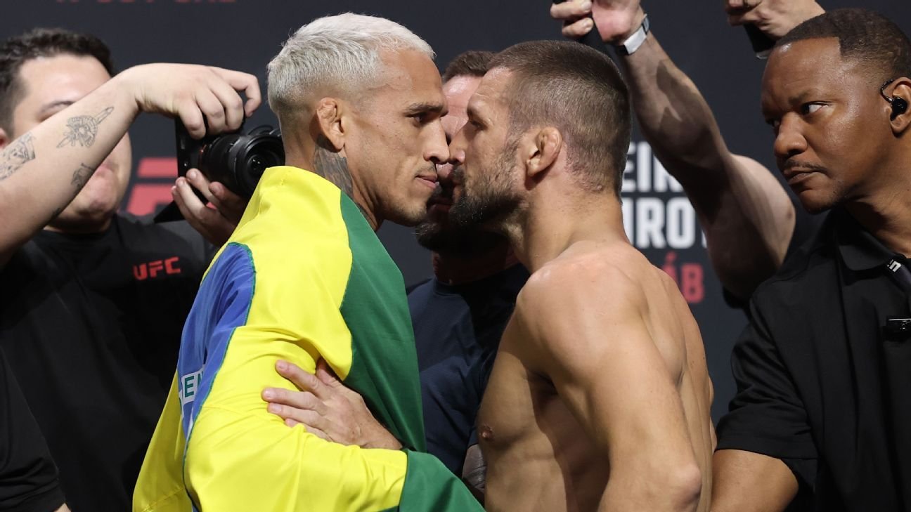 Mais cedo, na pesagem oficial, quase todos os atletas escalados para o evento cumpriram suas obrigações com a balança. Grande protagonista do show, Charles ‘Do Bronx’ bateu 70,7 kg, passando sem sustos pela balança, assim como Mateusz Gamrot.