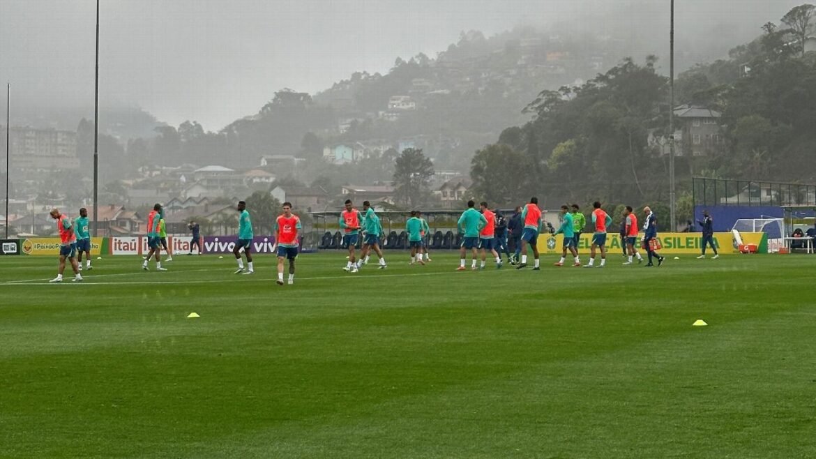 Como já previsto pela CBF, dos 24 jogadores convocados, apenas cinco atletas foram ausência no treino, já que chegam ao local apenas na noite desta segunda. São eles: Alisson, Caio Henrique, Gabriel Magalhães, Raphinha e Gabriel Martinelli.