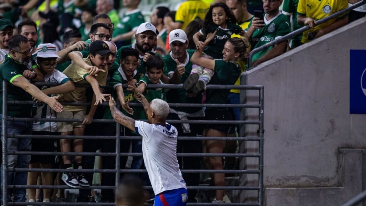 O atacante Deyverson, hoje no Fortaleza, reencontrou a torcida do Palmeiras neste sábado, e foi até mesmo para o meio da galera no Allianz Parque, antes e após partida válida pela 24ª rodada do Brasileirão.