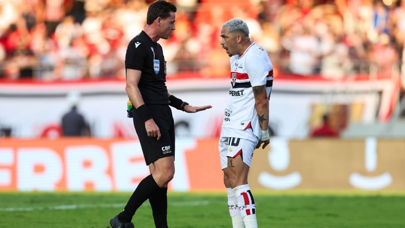 Em um deles, enquanto era analisado um possível cartão vermelho para Andreas Pereira, do Verdão, por falta dura em Marcos Antônio, do Tricolor, é possível ouvir o árbitro Ramon Abatti Abel fazendo um “desabafo” no campo de jogo (ouça no vídeo acima).