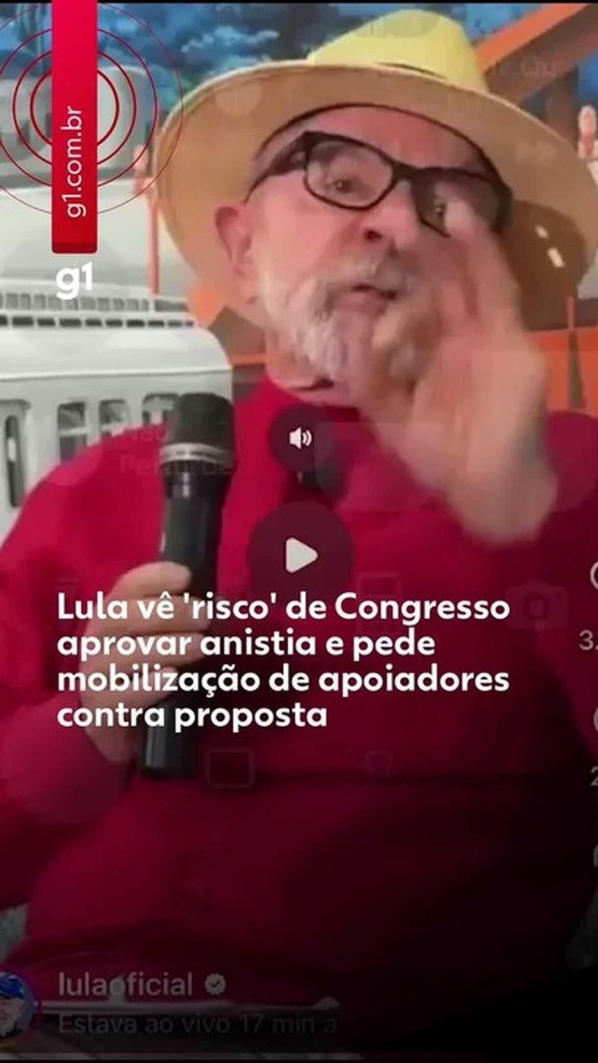 Lula vê ‘risco’ de Congresso aprovar anistia e pede mobilização de apoiadores