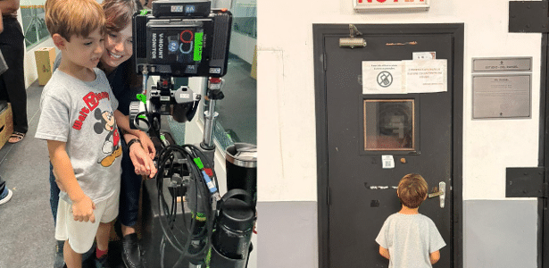 Rael, de 7 anos, apareceu em imagens divulgadas pela produtora Anonymous Content. Nos registros, o pequeno aparece ao lado da atriz nas dependências do set usado para as filmagens de “Tiro no Escuro”, que marca o primeiro filme produzido no brasil pela Anonymous.