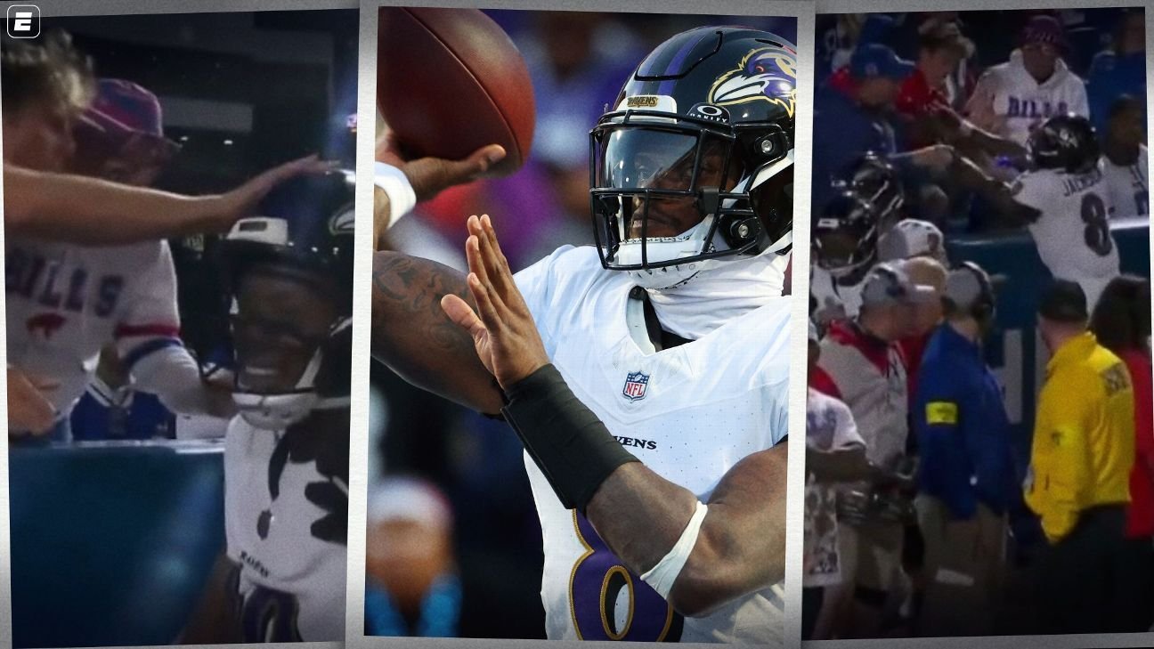 A confusão aconteceu após Jackson lançar um passe para touchdown de 29 jardas de DeAndre Hopkins no terceiro quarto. Os astros de Baltimore comemoraram perto da primeira fileira de torcedores do Highmark Stadium.