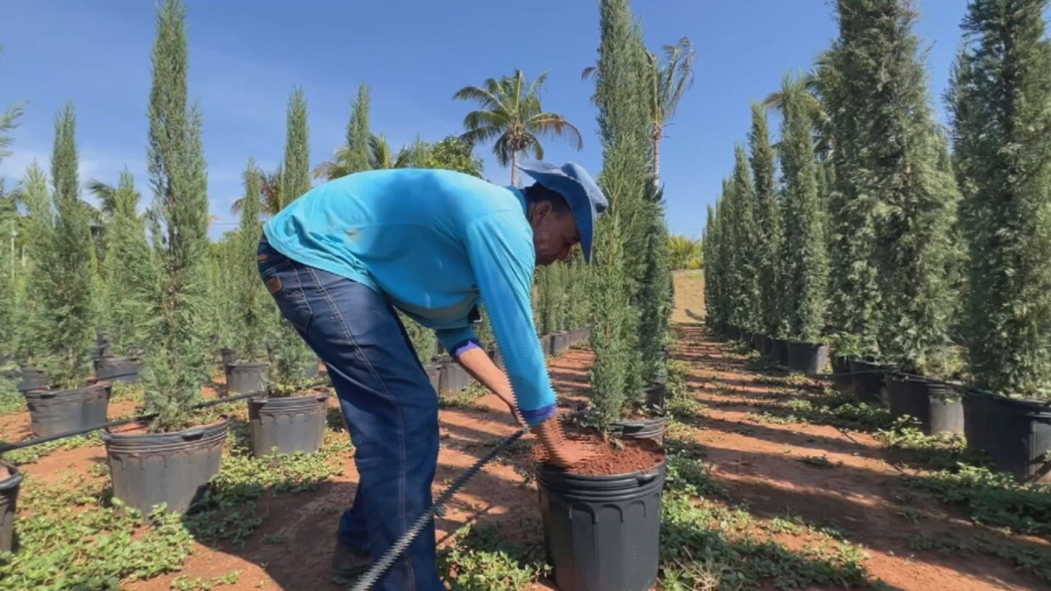 Em uma outra propriedade, Márcio Sérgio Longhi cultiva tuia holandesa, uma espécie de pinheiro usado para árvores de Natal. Ele consegue vender mais de duzentas mudas por mês e complementa a renda da família.