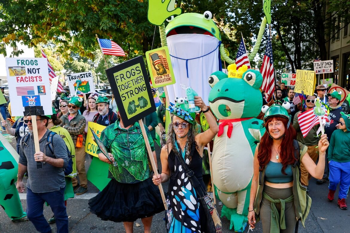 O movimento ganhou força depois que viralizou um vídeo de um manifestante usando uma fantasia inflável de sapo sendo contido com spray de gás de pimenta por agentes do Serviço de Imigração e Alfândega dos EUA (ICE) em Portland.