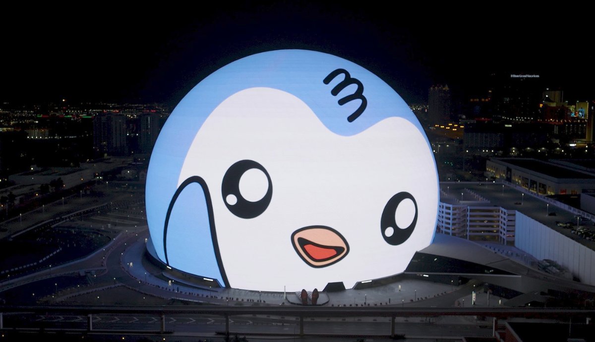 Depois disso, foram necessários meses para que animadores criassem o conteúdo, que agora está estampado na exosfera do imponente local e pode ser visto de vários pontos de Las Vegas. Uma fonte próxima à ativação disse que a Pudgy Penguins espera gerar um momento altamente viral a partir de uma animação que dura apenas um minuto.