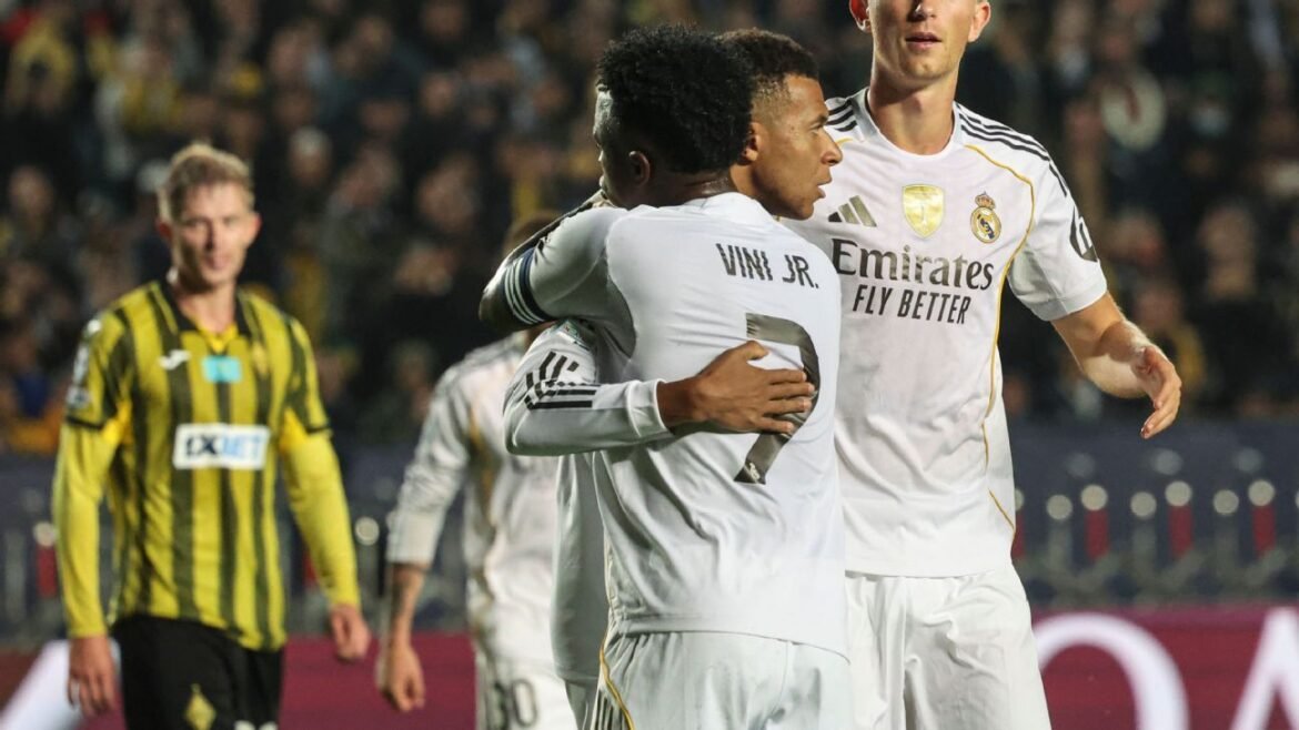 Com hat-trick de Kylian Mbappé, o Real Madrid goleou o Kairat por 5 a 0, nesta terça-feira (30), no Cazaquistão, pela abertura da 2ª rodada da fase de liga da Uefa Champions League.