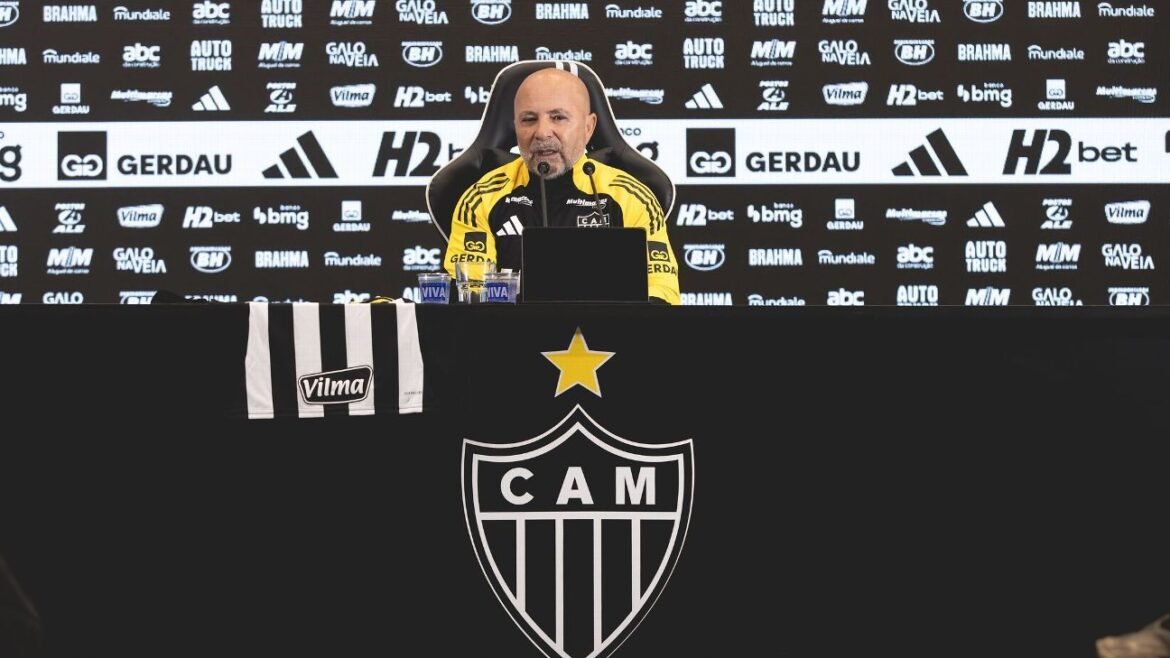 O argentino Jorge Sampaoli foi apresentado como técnico do Atlético-MG neste sábado (6). O treinador, anunciado na última terça-feira (2), concedeu entrevista coletiva na Arena MRV e explicou por que escolheu o Galo após negociar também com o Santos.