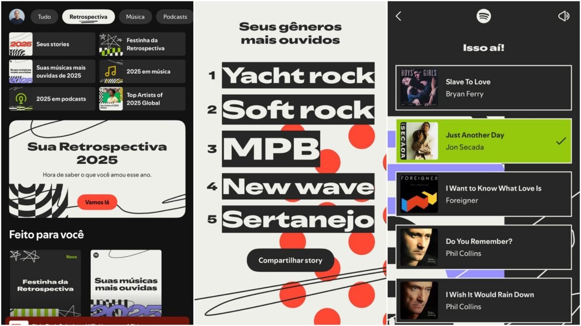 O recurso mostra quantos minutos de música você ouviu em 2025, quantos gêneros explorou e quais foram os mais frequentes. Também indica a sua “idade musical”, uma estimativa baseada no ano de lançamento das músicas que você escuta — quanto mais antigas as canções, maior será essa idade.