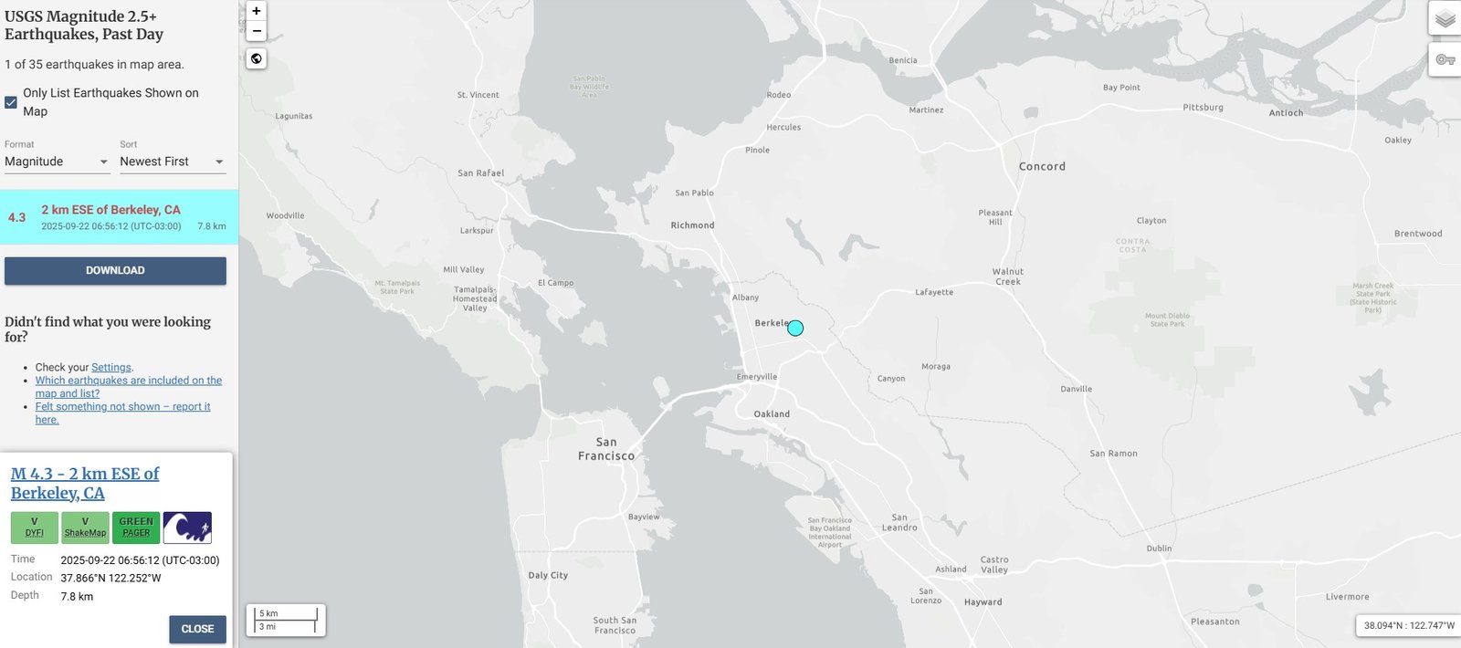 De acordo com o USGS, o tremor ocorreu pouco antes das 3h no horário local (7h em Brasília) e teve epicentro em Berkeley, no noroeste da cidade. O terremoto teve profundidade de 7,8 km, considerada próxima à superfície.