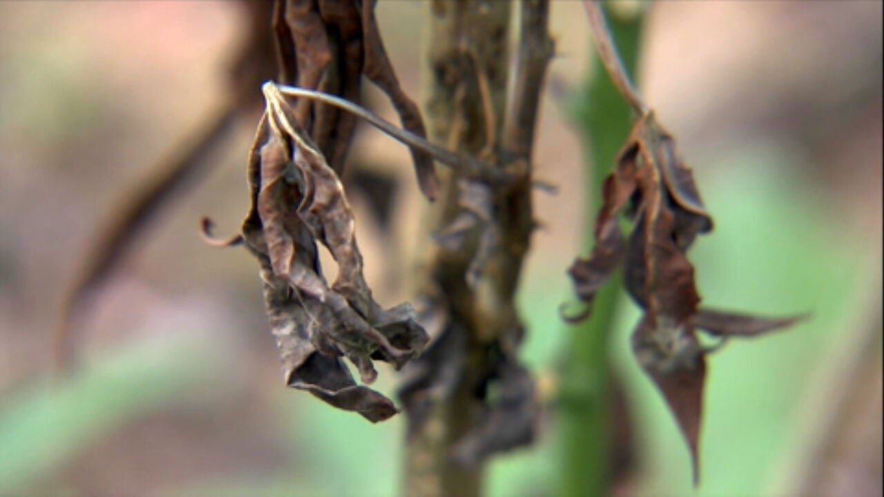 Alguns dos sintomas da doença são o amarelecimento das folhas, brotamento atípico e a morte da raiz, que é a parte mais aproveitada da mandioca.