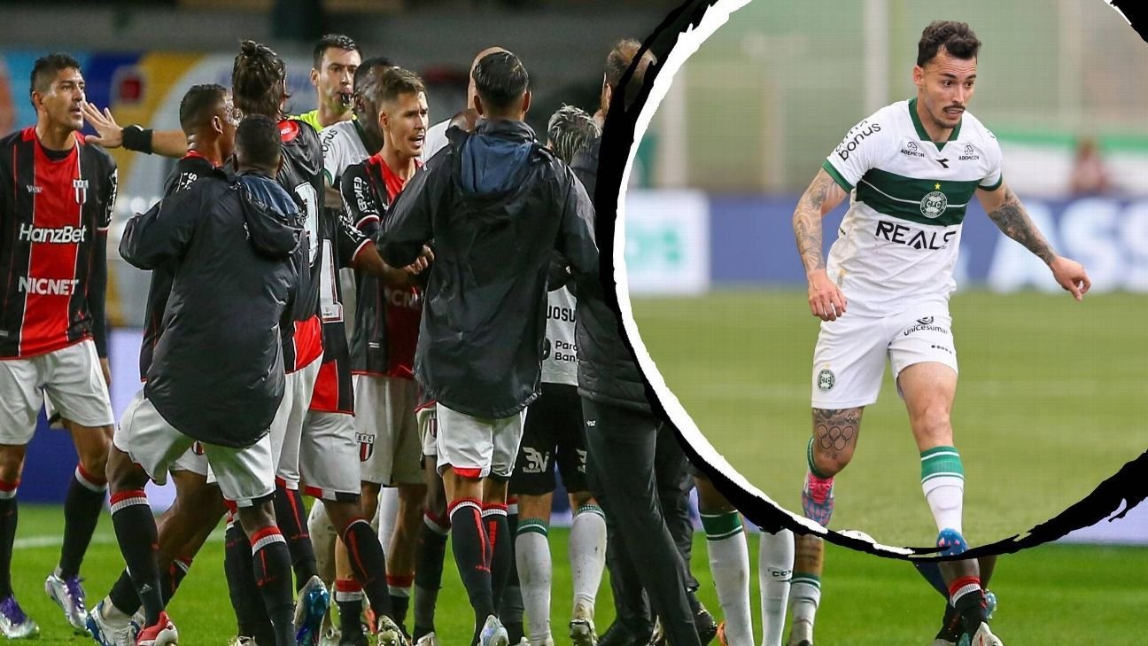 Inconformado com a decisão da arbitragem, Edson partiu para cima do lateral Zeca e deu um tapa no rosto do lateral do Coritiba, que foi contido pelos companheiros para não revidar.